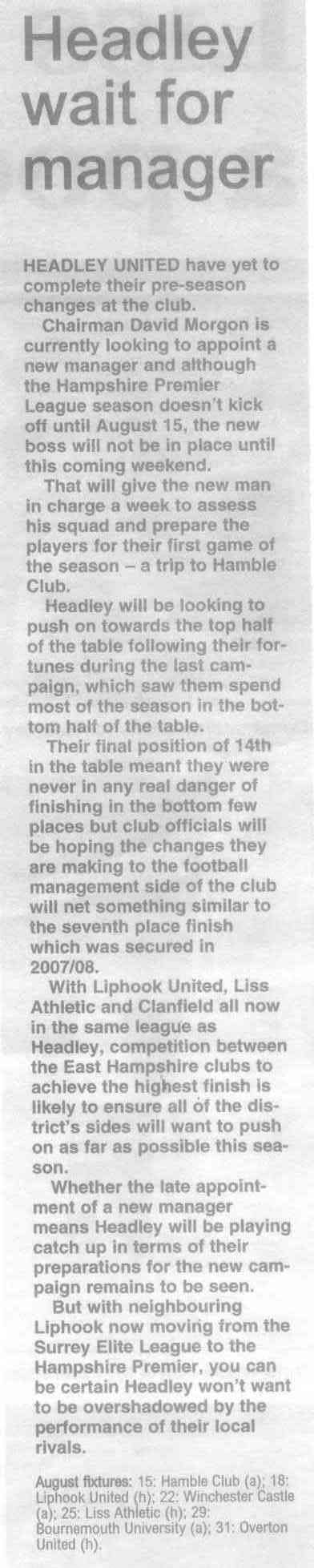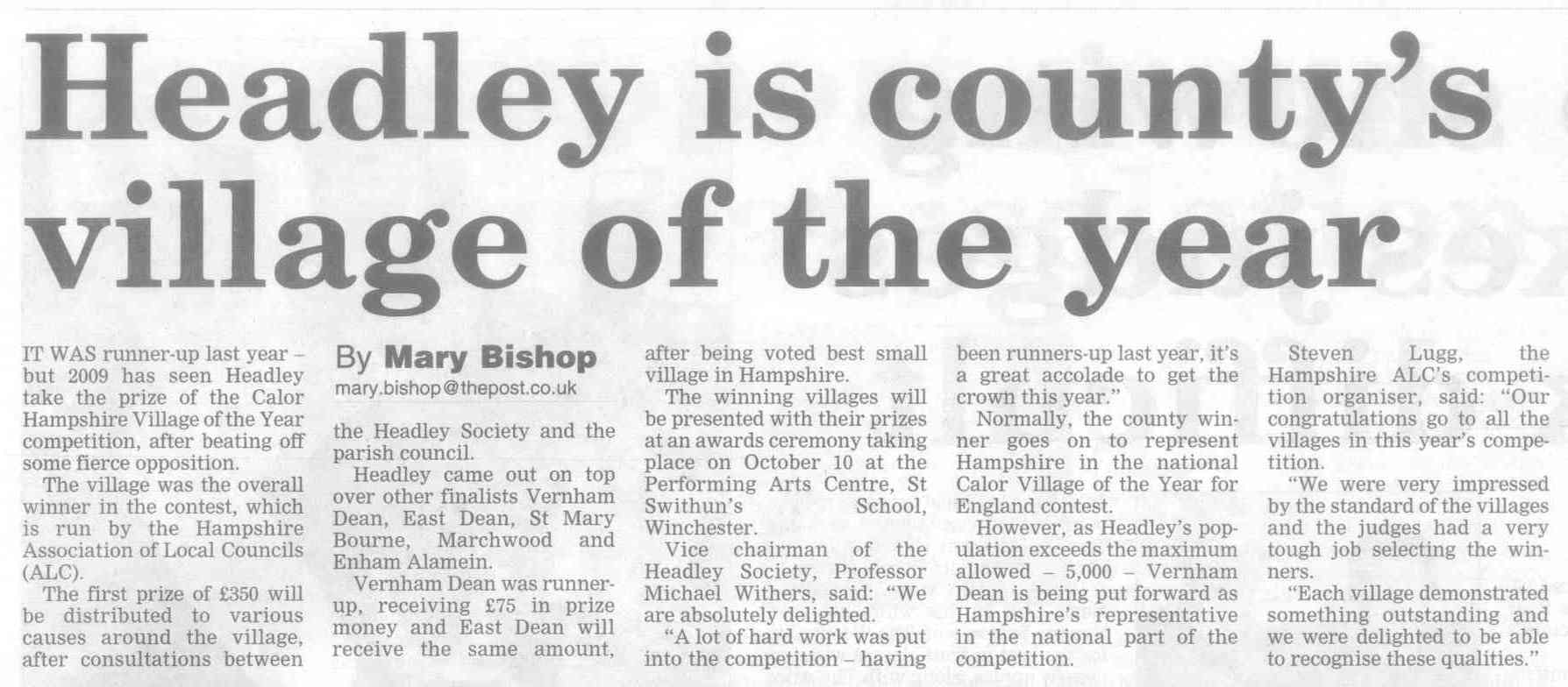 | 2019 | The Post has stopped covering Headley, the Messenger has stopped distribution to houses, and there's not much about Headley in the Herald any more | |||