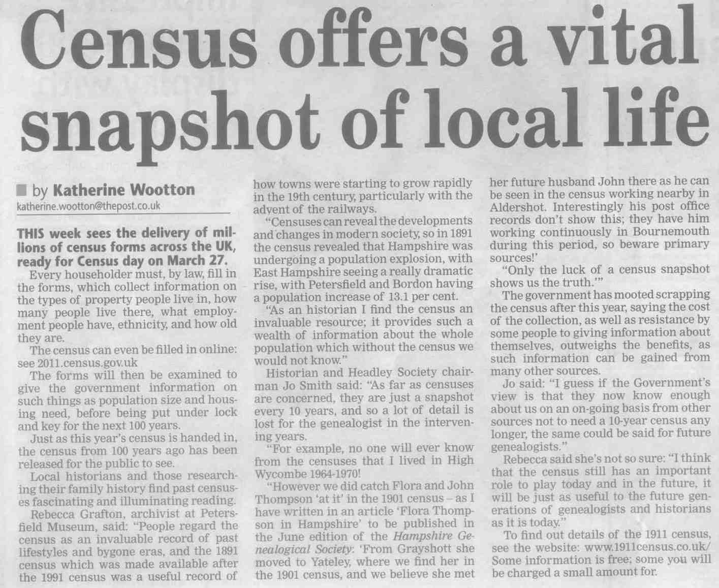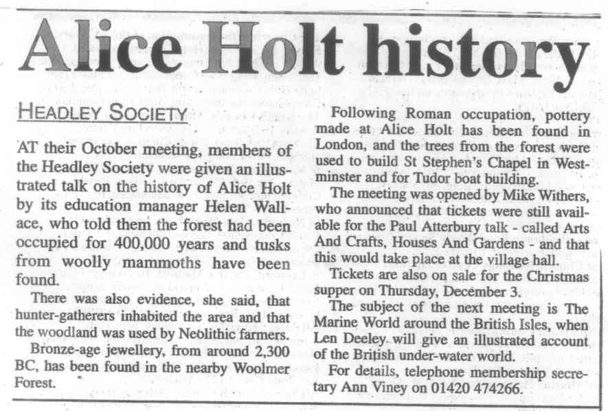 | 2015 | Oct-23-Bordon Herald | 08 | Headley day a big success - talk to Headley Society by Dr Ralph Kay, and report on the 'Here's Headley' day | |