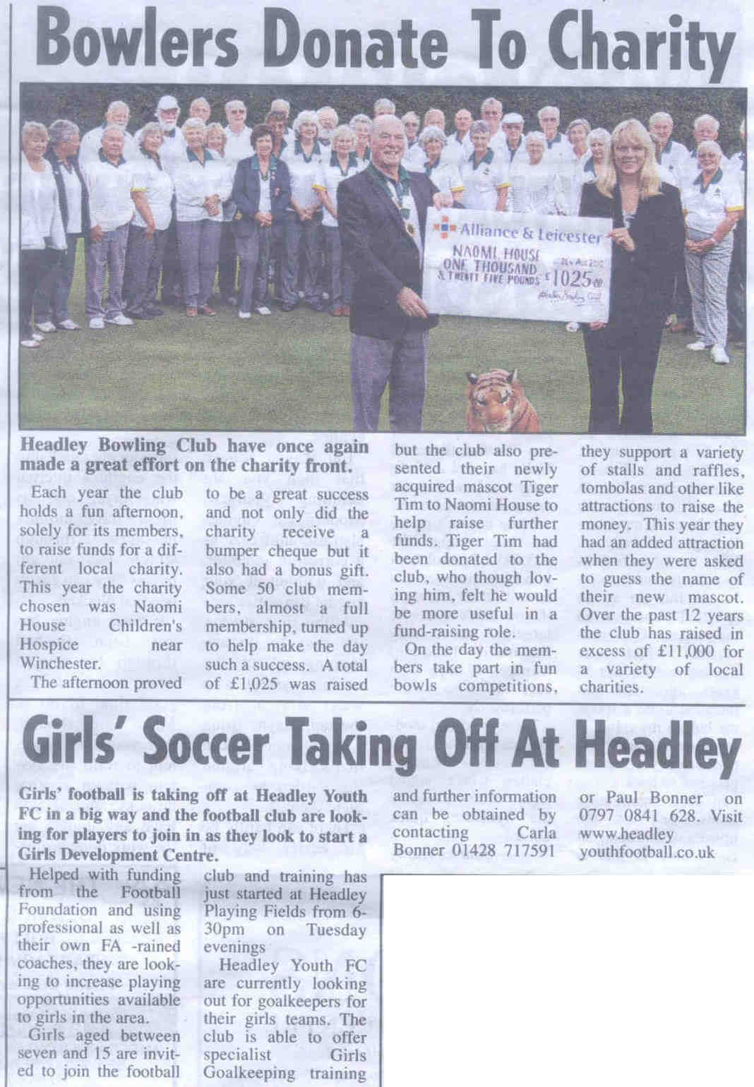 | 2015 | Sep-11-Bordon Herald | 05 | Diabetis charity is 'bowled over' - Headley Bowling Club present cheque | PP |