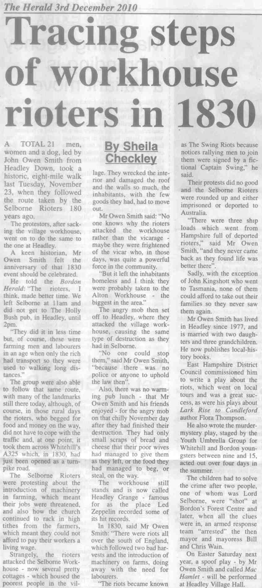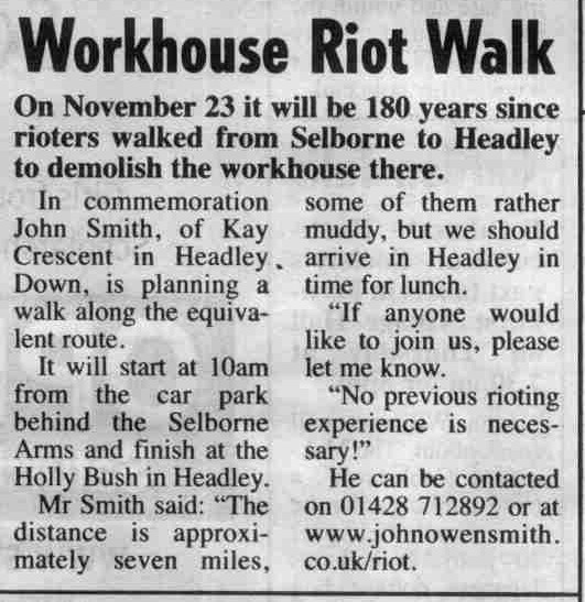 | 2017 | Jul-12-Post | 30 | How mob rule brought down two notorious workhouses - Headley Theatre Club's tour of Riot! | P |