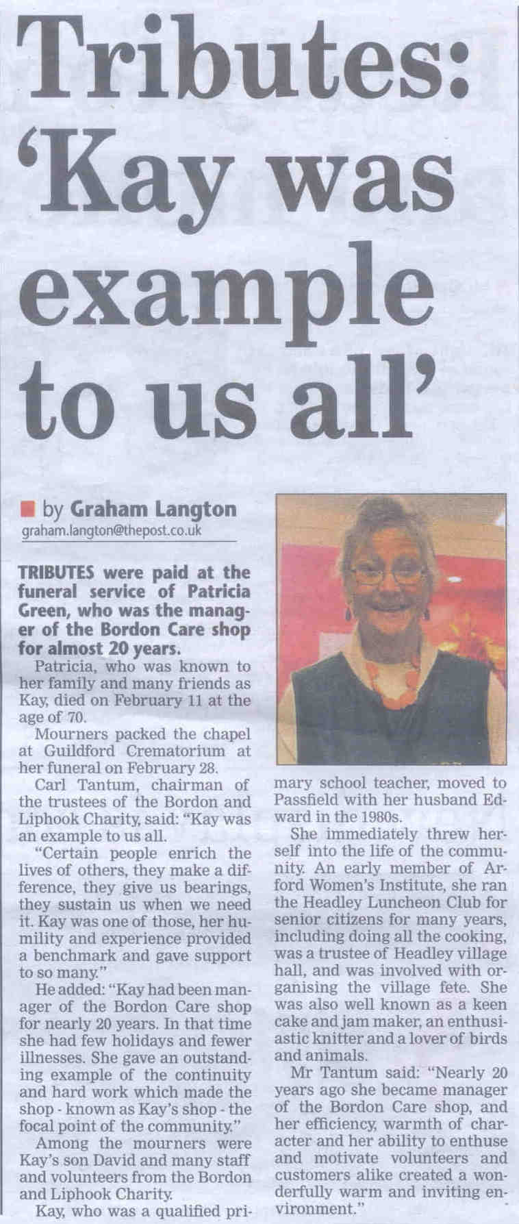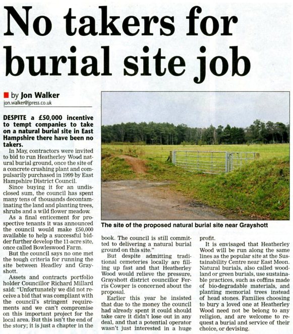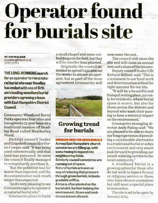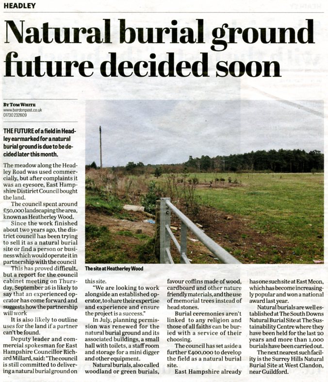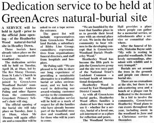 | 2015 | Mar-07-Bordon Herald | 01 | Dedication service to be held at GreenAcres natural-burial site - Heatherley Wood on Headley Down | |