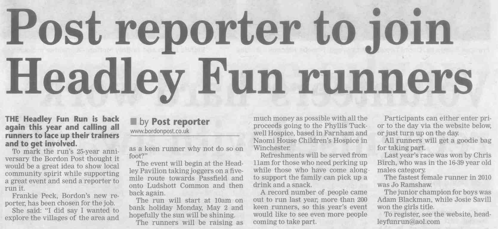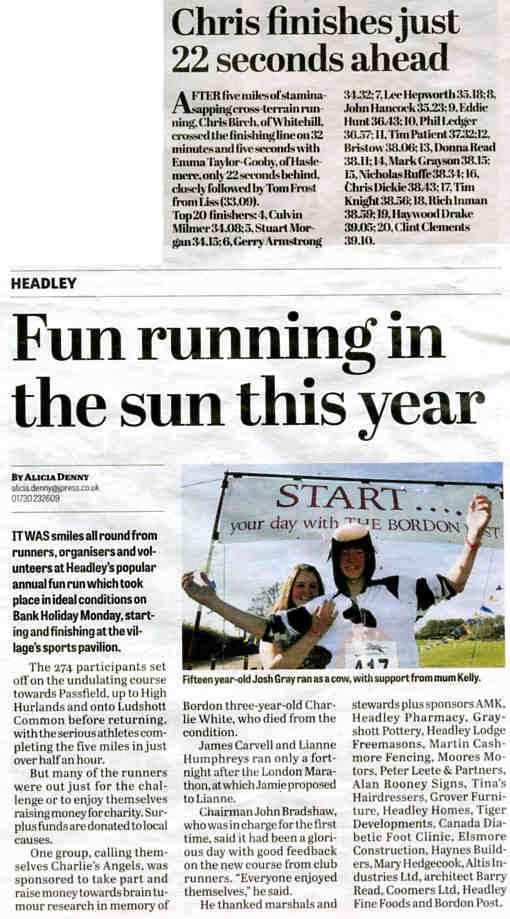 | 2015 | May-22-Bordon Herald | 03 | Headley Fun Run winners line up - results | |