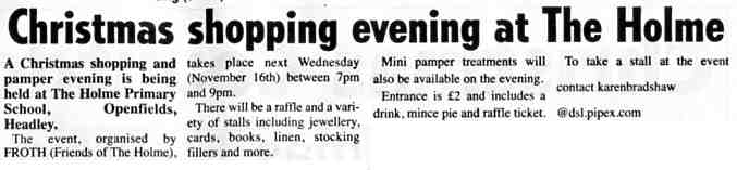 | 2016 | Nov-30-Post | 01 | Competition boost for fundraising - Holme School, Headley (although the article calls it a Bordon school and doesn't mention Headley!) | P |