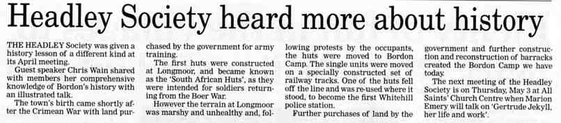 Railway history excites interest - talk on the Longmoor Military Railway to The Headley Society by John Huntley | P | |