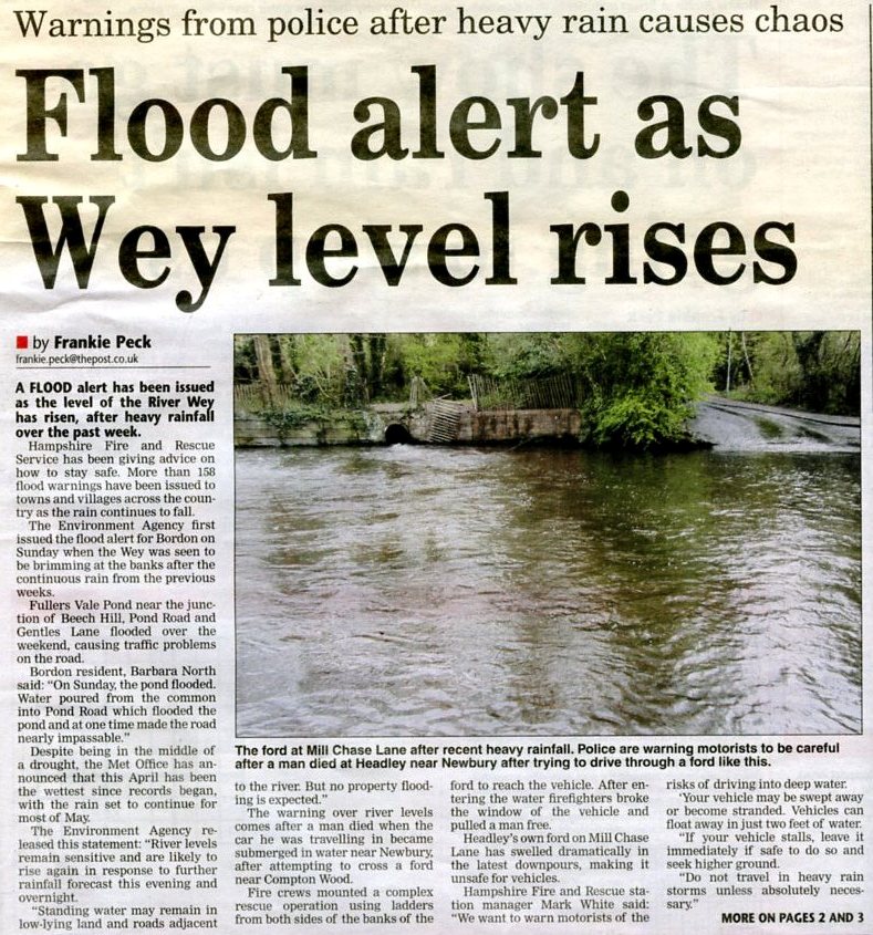 | 2015 | Oct-23-Bordon Herald | 01 | Van finds itself in hot water - Thames Water van stuck in Standford ford | P |