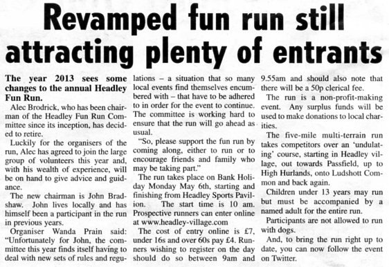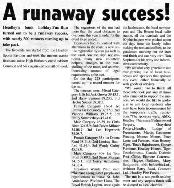 Fun Run notches up 30 years - Headley Fun Run - contd |