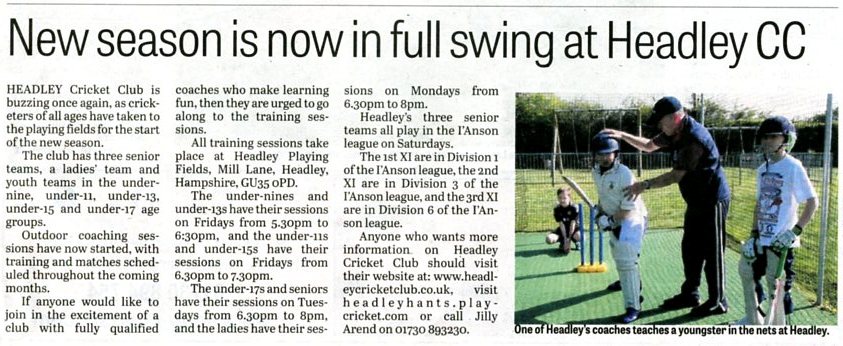 | 2017 | May-10-Post | 38/39 | Cricket reports for Headley men's and ladies' teams - p.38 - p.39 | |