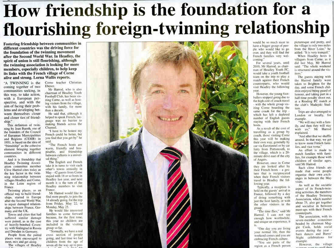 | 2015 | Apr-24-Bordon Herald | 16 | How friendship is the foundation for a flourishing foreign-twinning relationship - part 2 - interview with Clive Harrod of Headley Twinning Association | P |
