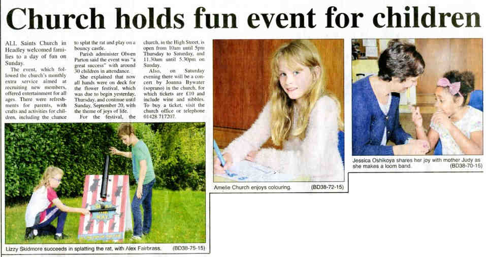 | 2015 | Sep-18-Bordon Herald | 03 | Church holds fun event for children - more pics - All Saints' Church, Headley | PP |