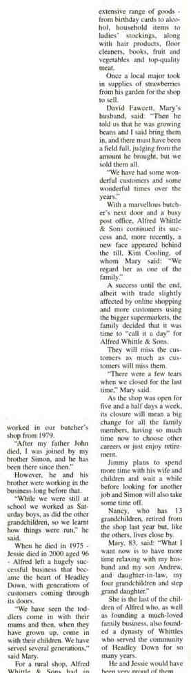 | 2015 | Oct-09-Bordon Herald | 12 | Whittle's closes after 65 years of serving village - contd - also - pic - pic - pic | PP |