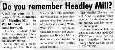 | 2016 | Mar-01-Messenger | 01 | Do you remember Headley Mill? - Anne Miller's oral history project | |