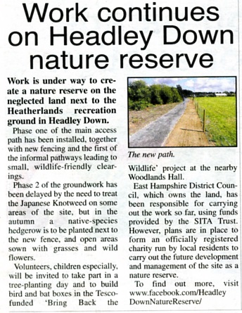 | 2016 | Aug-30-Messenger | 03 | Work continues on Headley Down Nature Reserve | P |