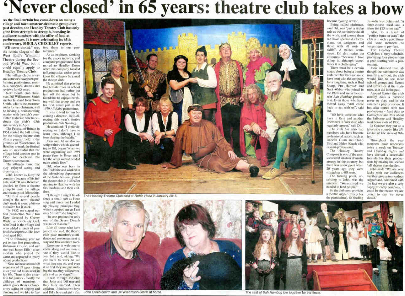'Never closed' in 65 years: theatre club takes a bow - Headley Theatre Club interview with Dil & Jo Smith |