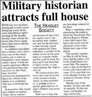 Military historian attracts full house - Alan Turton speaks to The Headley Society |