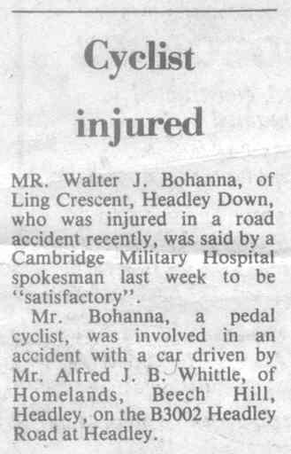 Cyclist injured - Walter Bohanna knocked down by Alfred Whittle | ||