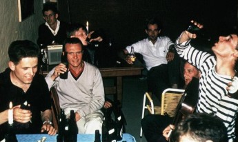 Decades ago, friends of mine Dave & Ingrid got married in Denmark, and I was there. Dave sent me a photo the other day of us enjoying ourselves, and dared me to show it – so here it is. I'm the one on the right with the French navy T-shirt and a bottle of lager in my mouth. Dave's bottom left – I don't know what he's doing, but no doubt he'll tell me! |