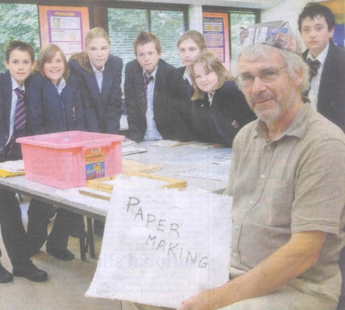 The deed is done – the beard is off – the face is back to normal. But not before it was plastered across the front page of the Haslemere Herald in all its glory. I was demonstrating paper-making to a local school during an 'enrichment day' (whatever that is) a couple of weeks ago when a press photographer arrived – she must have taken countless shots of the school that day, but 'scruffy' made it to the front page! (see left) Went walking along the Sussex/Hampshire border the other day and got thoroughly lost. The map said the border path went left; the sign said it went right. We decided to go left because it looked more interesting. Isn't there something in the Bible about not choosing the path which looks easier? The dashed green line on the map seemed a doddle to follow – but it wasn't backed up by signs on the ground, or if it was, we missed them. |