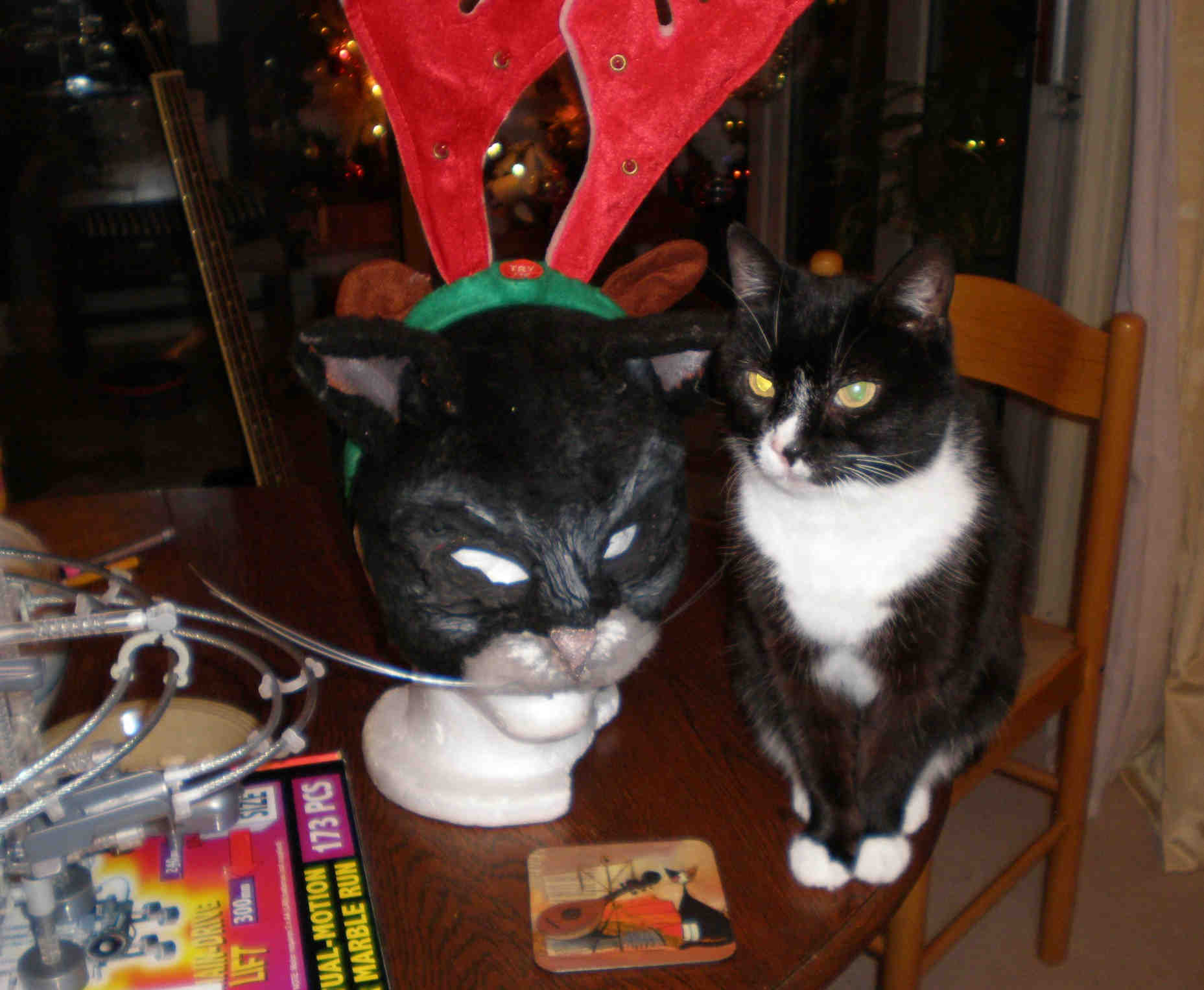 Dil is playing Puss, as well as making most of the costumes for the rest of the cast, and she's observing our own cats to see how to behave. They seem particularly unimpressed with this interloper in the house! If you want to come and see the show (and I'm sure you do now), look at the website for ticket details. |
