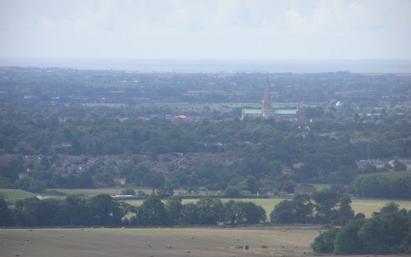 What's this? A sunny Bank Holiday! We set ourselves up on a sunny hillside and waited for Oliver Cromwell to arrive, which he did on schedule around 11.15am on his way from Waterloo to Yeovil, to mark the 150th anniversary of the opening of the railway line from London to Portsmouth. Those of you who have my book Walks from the Railways might recognise the view – it's taken from the same point as the picture on the front cover, but that time it was an electric train passing by. |