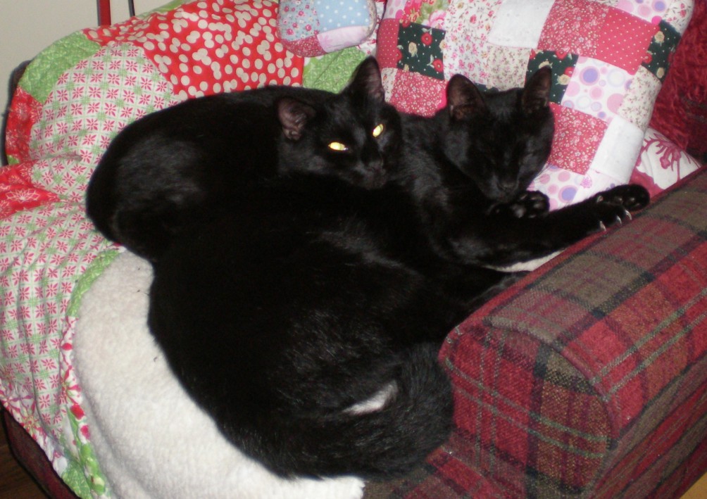 9th March 2015Having been without cats for a few years now, we decided to give a home to two from the local Cat's Protection two jet-black 2-year-old brothers. Of course, as soon as we got them home they decided to find the most obscure places to hide. Have you tried locating a jet-black cat in one of the many dark corners that exist in a house? Eventually we found them in the washing machine! Reminded us of the joke mug we had in the cupboard. Now we make sure to shut the washing machine door after use. |