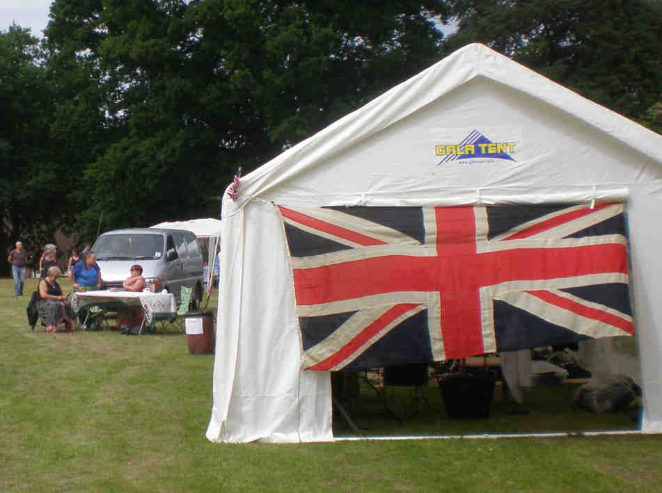 13th June 2016Well, we chose the right day for the village to celebrate the Queen's 90th birthday: the Saturday rather than the Sunday – the weather held for us, the next day would have been a bit wet. I was compering in the tent with the Union Jack on it – the Theatre Club had their picnic table (just in view) next to it. |